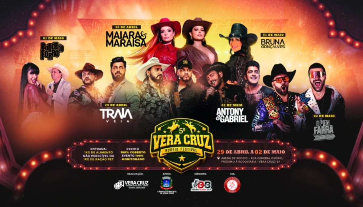 A contagem regressiva acabou. Vera Cruz entra no clima de festa a partir desta quarta-feira (29) com o início do 5º Vera Cruz Rodeio Festival, que promete quatro noites intensas de música, tradição e emoção na arena.