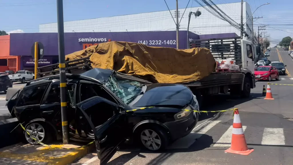 Um caminhão carregado com cerca de três toneladas de tinta perdeu o freio e atingiu uma Parati parada no semáforo, no início da tarde desta quinta-feira (16). No carro estavam uma mãe de 45 anos e sua filha de 13, que tiveram ferimentos leves e receberam socorro imediato do Corpo de Bombeiros. O veículo estava […]
