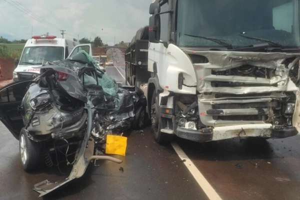 Motorista morre em colisão entre carro e carreta na SP-333